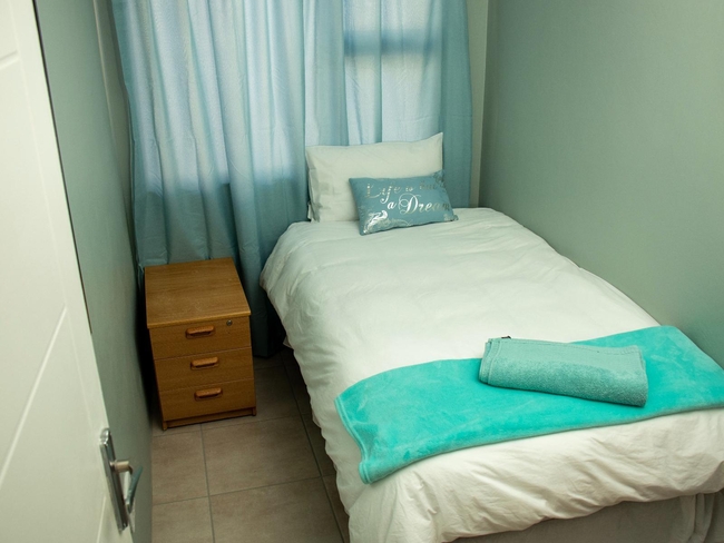 The One Bedroom Apartment features a main bedroom with a double bed and an additional single bed in the open-plan living area, offering comfortable and flexible accommodation. The apartment is fully self-catering and equipped with solar power to ensure comfort during power outages. Guests can enjoy uncapped Wi-Fi, air conditioning, and a TV with satellite and streaming services. The unit includes a full kitchen with modern appliances, coffee and tea facilities, and essential kitchen supplies. Additional amenities include towels, an iron, braai facilities, a patio, and access to a swimming pool. The apartment is non-smoking, with bathroom options including a shower-only unit or a bath with shower.