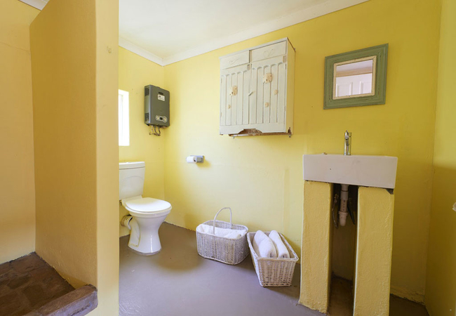 Honey Badger Cottage has two bedrooms and one bathroom. The main bedroom is furnished with a double bed and the second bedroom is furnished with two single beds. These rooms share a bathroom fitted with a shower, toilet and basin. The open plan kitchen is fitted with a fridge, stove and oven. The living area has an open wood burning stove and a dining area. Outside is an enclosed garden with a covered pergola and braai facilities.
