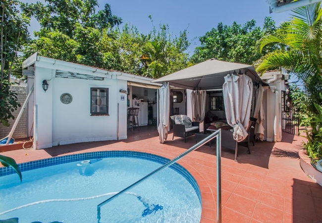 Breakfasts (full English and/or Continental) are served on our front patio overlooking the Indian Ocean which is about 800 meters walk away. There is a pool for guests use where you can enjoy a sunbed or just float around in the water. There are also Braai (Barbecue) facilities for your use either round the pool or outside your own room.