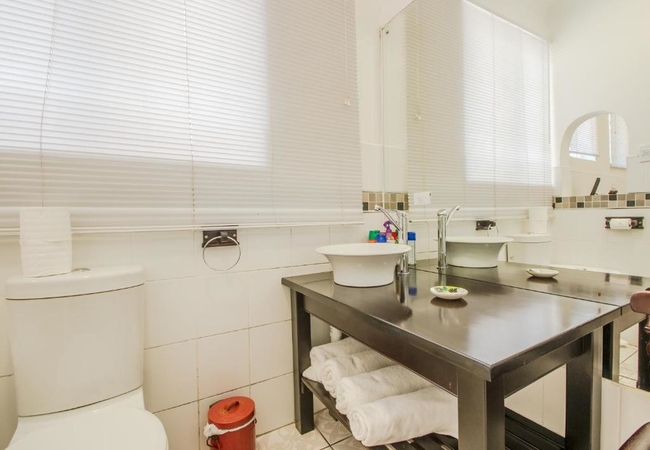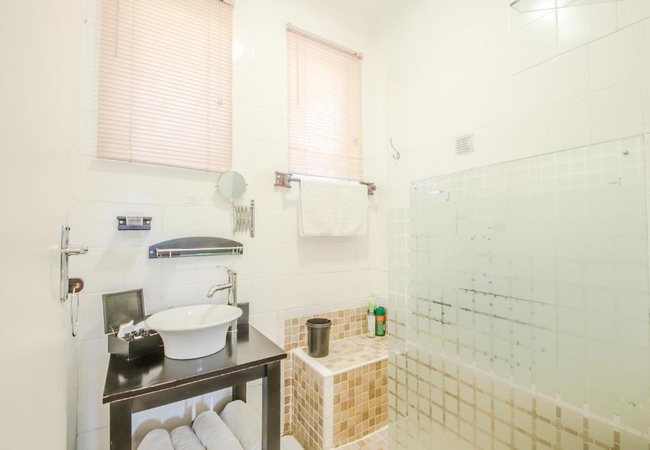A two bedroom unit, one with king-size bed or 2 single beds, the other 2 single beds, small kitchenette with microwave and fridge. Private entrance from the gardens. Our rooms all have en-suite bathrooms with individual private entrances from our gardens. Facilities in the rooms include TV with MNET, CSN and a Satellite channel together with tea/coffee making facilities.