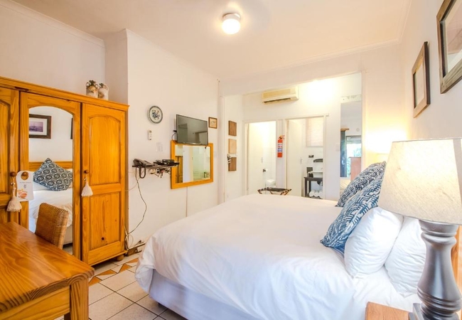 Room 5 is a Double Room with en-suite bathroom with king-size bed (can be converted to win beds. Please specify your preference after you have confirmed your booking). Private entrance from the gardens. Our rooms all have en-suite bathrooms with individual private entrances from our gardens. Facilities in the rooms include TV with MNET, CSN and a Satellite channel together with tea/coffee making facilities.