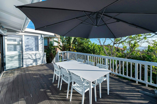 A private balcony provides stunning sea views, creating an ideal setting to unwind. Guests can also enjoy the outdoor dining area with comfortable furniture and make use of the braai facilities, perfect for relaxed meals while taking in the ocean scenery.