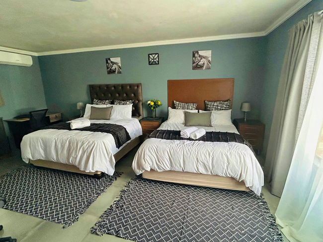This family-friendly room features two queen-size beds and a private bathroom. Guests enjoy air-conditioning, a bar fridge, a TV with streaming apps including Netflix, a desk, and free Wi-Fi, while the room offers views of the garden and pool. Additional conveniences include coffee and tea facilities, a microwave, a hairdryer, an iron with ironing board, and outdoor furniture. This non-smoking unit also provides DSTV or satellite TV and benefits from a regular cleaning service for added comfort.