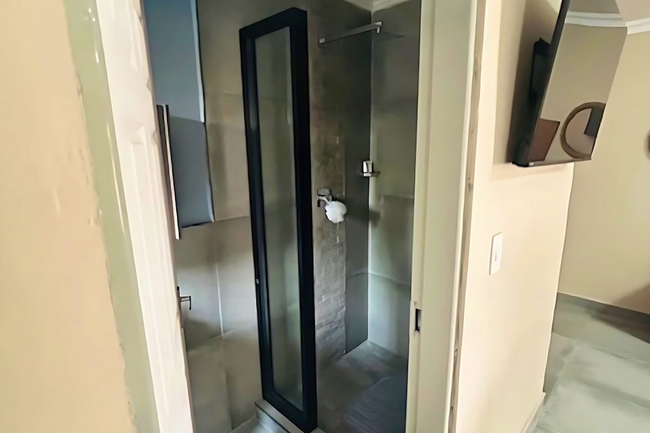 This room is furnished with a queen-size bed and features an en-suite bathroom with a shower. Guests can enjoy air-conditioning, a bar fridge, a TV with streaming apps including Netflix, a desk, and free Wi-Fi. The room overlooks the garden and pool, offering a tranquil and relaxing view. Additional conveniences include coffee and tea facilities, a microwave, a hairdryer, and an iron with ironing board. This non-smoking unit also benefits from DSTV or satellite TV and a regular cleaning service.