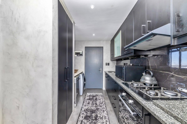 This stylish one-bedroom apartment accommodates two guests and is furnished with a king-size bed. The en-suite bathroom is well appointed with a shower, basin, and toilet, and high-quality linen is provided for your stay. Designed with convenience in mind, the open-plan layout features a kitchenette fitted with a fridge-freezer, stove, oven, microwave, and all essential cutlery and crockery, as well as tea and coffee facilities. A dishwasher and washing machine are also available, making longer stays effortless. The lounge offers a welcoming space to unwind with comfortable seating and a television. An inverter provides backup power for lighting, Wi-Fi, the television, and an additional plug point, ensuring uninterrupted comfort during load shedding. The private balcony, accessible from the bedroom, offers an inviting outdoor seating area and spectacular views of the Atlantic Ocean. Guests can also enjoy the shared swimming pool, perfectly positioned to take in panoramic sea vistas.
