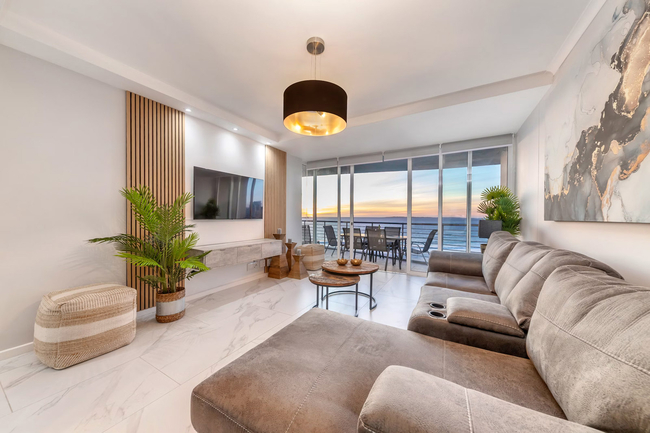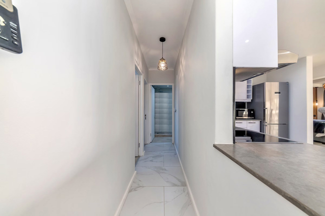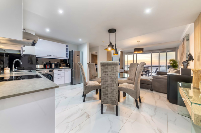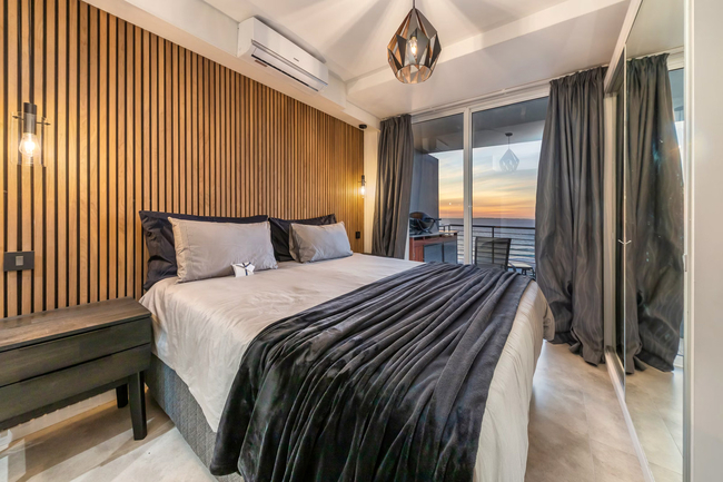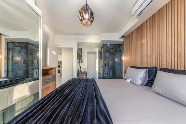 This 3-bedroom apartment can comfortably accommodate 6 guests at a time and comes equipped with an inverter to provide backup power for lights and essentials during power outages. The main bedroom is furnished with a queen-size bed and has an en-suite bathroom fitted with a shower, basin, and toilet. The second and third bedrooms are furnished with a queen-size bed, and 2 single beds respectively. These 2 rooms share the use of a guest bathroom fitted with a shower, basin, and toilet. Linen and towels are provided. Guests enter an expansive open-concept living area that features a fully equipped kitchen, dining area, lounge. The kitchen is equipped with a fridge-freezer, stove, oven, microwave, cutlery, crockery, and tea- and coffee-making facilities. For guests’ convenience, there is a dishwasher, washing machine, and tumble dryer. The 6-seater dining table is the perfect place where guests can enjoy their meals and further opens up to the lounge furnished with comfy couches and a smart TV with free Wi-Fi access. The balcony is the highlight of this property boasting a gas braai and beautiful views of the ocean. It’s the perfect spot to unwind with a sundowner or savour your morning coffee. Secure parking is available for 2 cars on the premises, and guests have access to the sparkling communal swimming pool.