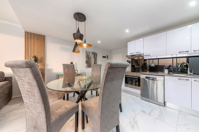 The 6-seater dining table is the perfect place where guests can enjoy their meals and further opens up to the lounge furnished with comfy couches and a smart TV with free Wi-Fi access.