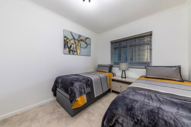 The main bedroom is furnished with a queen-size bed and has an en-suite bathroom fitted with a shower, basin, and toilet. The second and third bedrooms are furnished with a queen-size bed, and 2 single beds respectively. These 2 rooms share the use of a guest bathroom fitted with a shower, basin, and toilet. Linen and towels are provided.