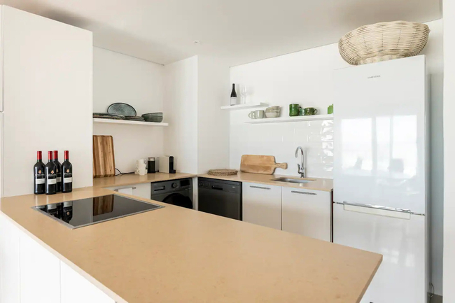 Designed to accommodate up to four guests, the apartment features two tastefully appointed bedrooms, two bathrooms, and a spacious open-plan kitchen that flows seamlessly into the living area.