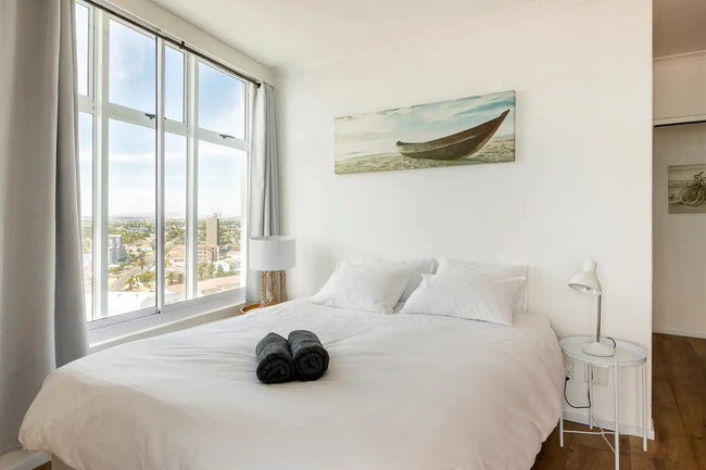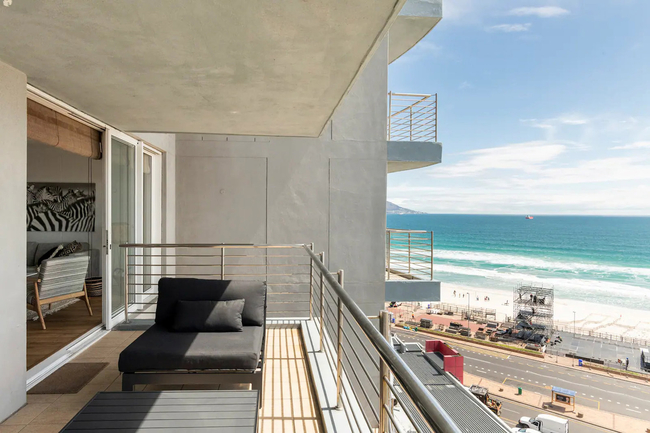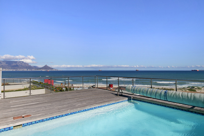 The balcony is the perfect vantage point from which to take in uninterrupted views across the ocean, with Robben Island on the horizon and sunsets that provide a spectacular close to the day. Guests also benefit from secure parking within the complex as well as access to a communal swimming pool.