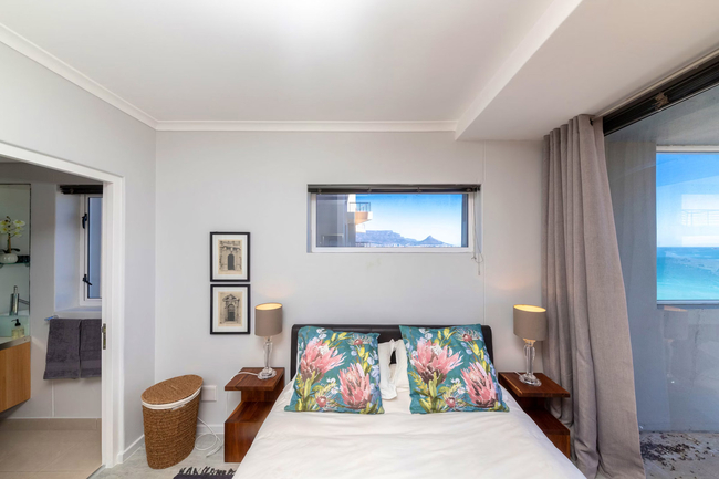 The apartment features two bedrooms and two bathrooms, striking the perfect balance between style and practicality. The master bedroom is furnished with a queen-size bed and enjoys the privacy of an en-suite bathroom fitted with a bath, shower, and toilet. The second bedroom is arranged with twin beds and is conveniently served by a separate bathroom complete with a shower, basin, and toilet. Crisp linen and soft towels are thoughtfully provided for guests’ comfort. The open-plan layout enhances the apartment’s spacious feel and is designed to cater for relaxed living. The kitchen is equipped with everything required for effortless self-catering, including an oven, stove, fridge, microwave, dishwasher, washing machine, and a small gas hob. The lounge area, fitted with Wi-Fi and a smart TV, offers a welcoming spot to unwind or enjoy entertainment, with guests making use of their own login details for streaming services. Sliding doors lead onto a private balcony where sweeping views of the coastline can be enjoyed. For peace of mind during loadshedding, the apartment is fitted with a convenient plug-and-play inverter system. Guests also have access to a communal swimming pool as well as two secure parking bays. With its blend of comfort, style, and prime location, this apartment is perfectly suited to those seeking a tranquil retreat within easy reach of Cape Town’s lively city centre.