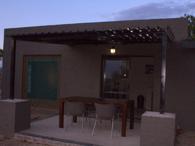 The chalets feature sleeper wood furniture and original wildlife paintings, can accommodate 2 or 4 guests and have sliding doors opening to covered patios with outdoor dining area, and braai facilities. There are also lapa fire pit areas with seating.