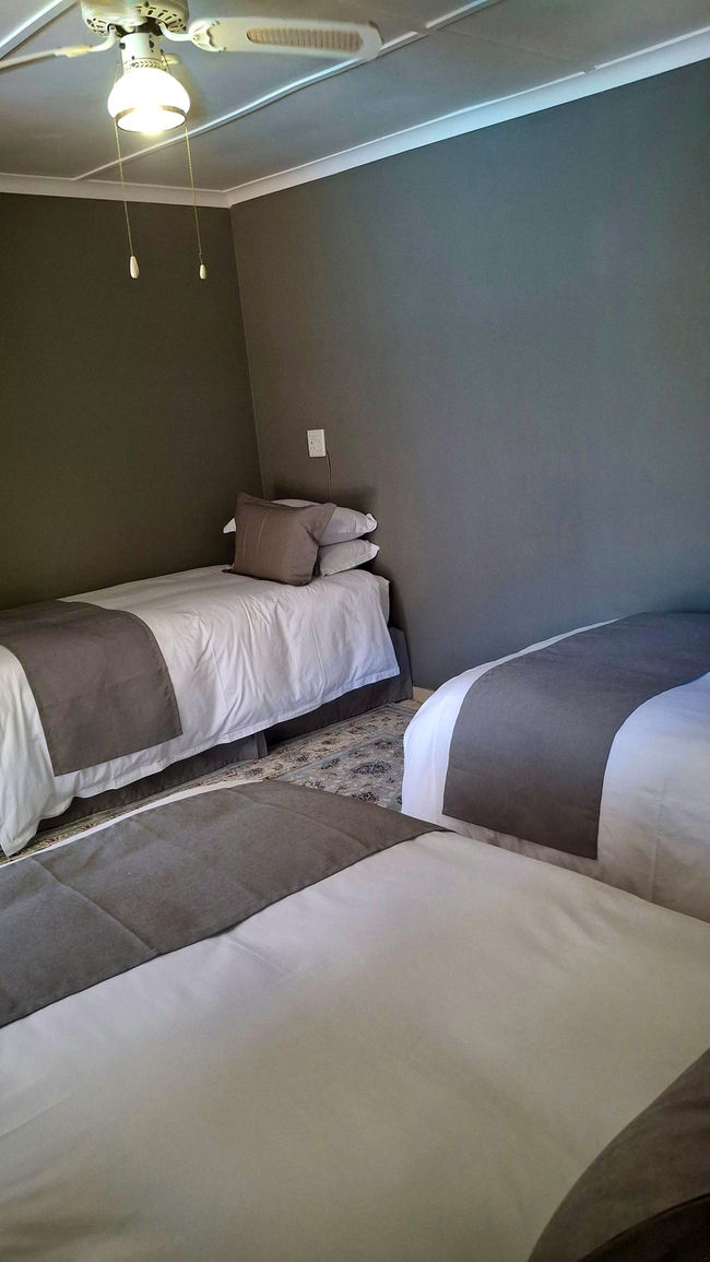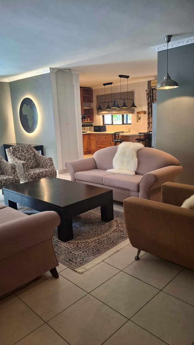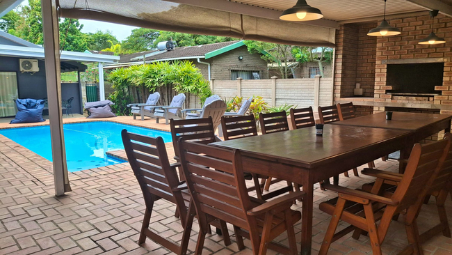 Hornbill Fishing Suites is an inviting self-catering holiday home in St. Lucia, ideally suited for friends and family seeking a convenient and comfortable home base from which to experience the charm of this coastal town. The air-conditioned property can host up to 11 guests, comprising two bedrooms in the main house and three additional bedrooms in a separate building, along with six bathrooms in total. In the main house, each bedroom is furnished with two single beds that can be configured as king-size beds, while two of the outside bedrooms each have two single beds, and the final bedroom features one single bed and two three-quarter beds. Every bedroom provides access to a private en-suite bathroom equipped with a shower, washbasin, and toilet. The guest bathroom contains a full bath. All linen and bath towels are supplied, although guests should bring their own towels for swimming. The kitchen comes fully equipped with a fridge-freezer, stove, oven, microwave, cutlery, crockery, and tea- and coffee-making facilities, along with a washing machine and dishwasher for convenience. The dining and lounge areas offer comfortable seating for both meals and relaxation, and a television is provided for entertainment. Guests can also enjoy free, uncapped Wi-Fi throughout the property. Outside, the property features a patio with a braai and dining area, alongside a swimming pool. Secure parking is available for three vehicles and two boats.