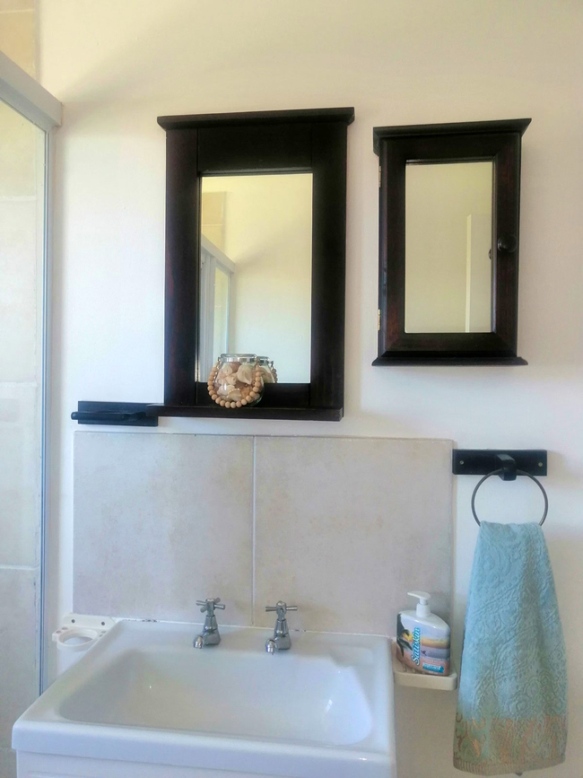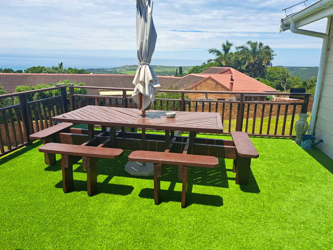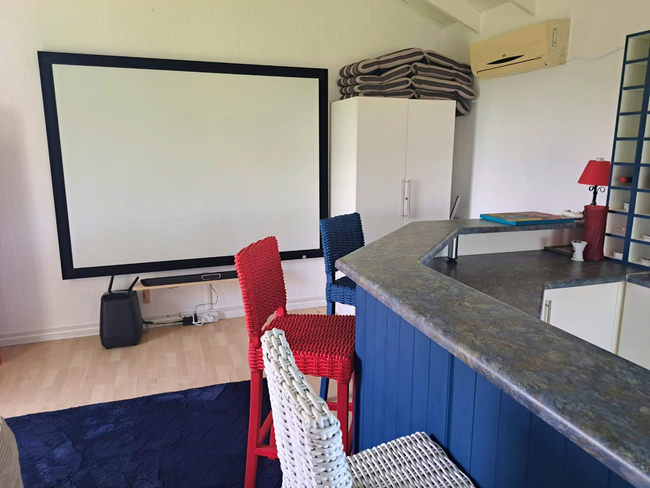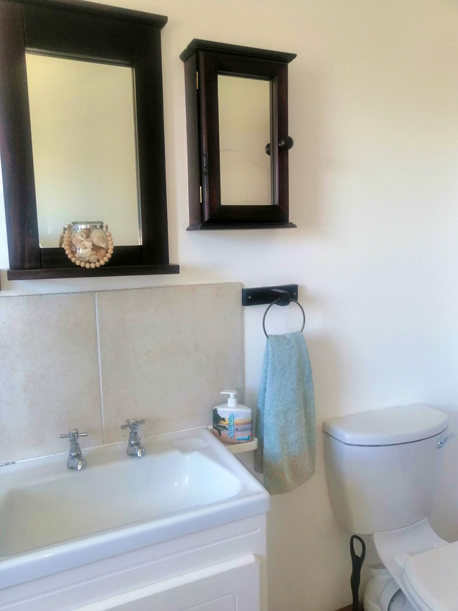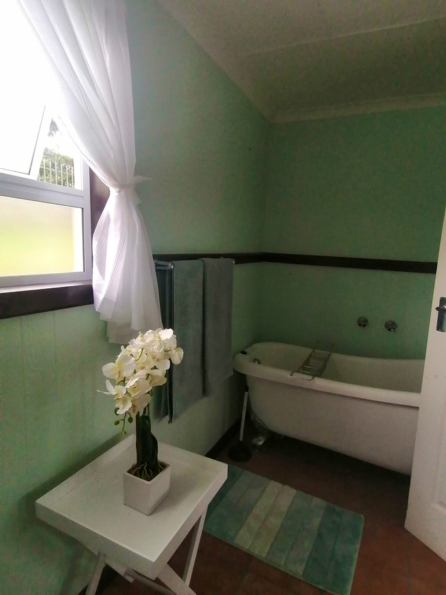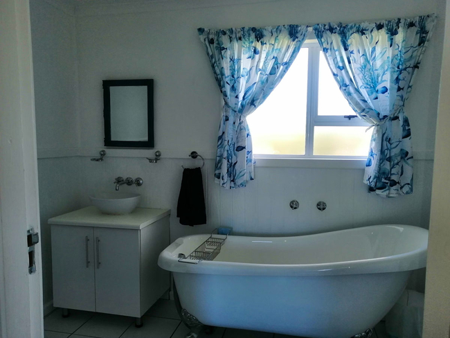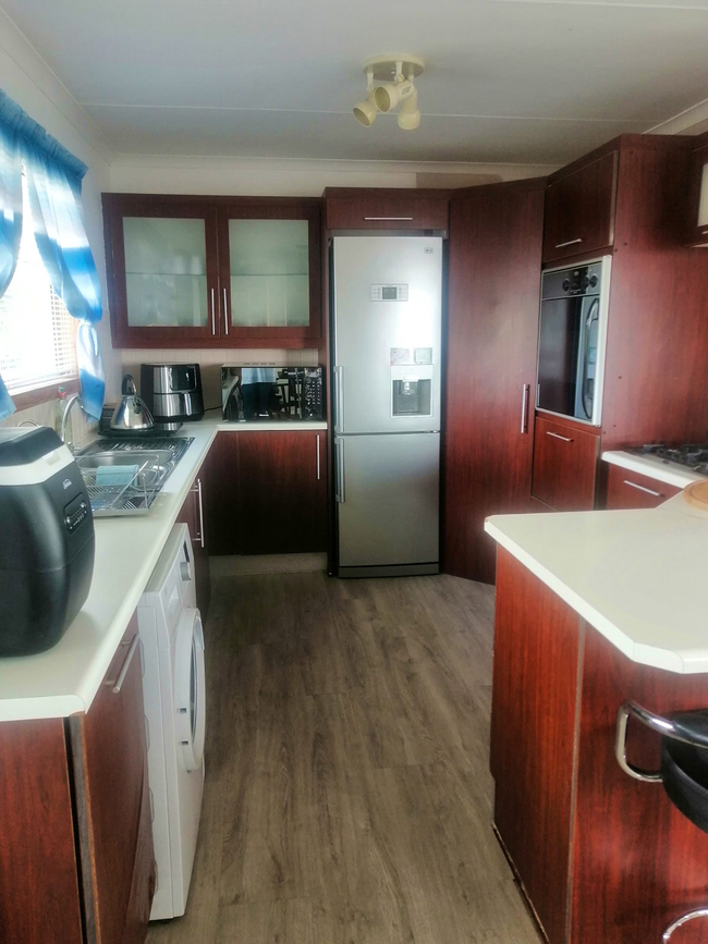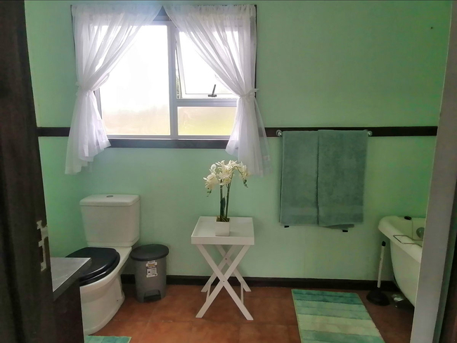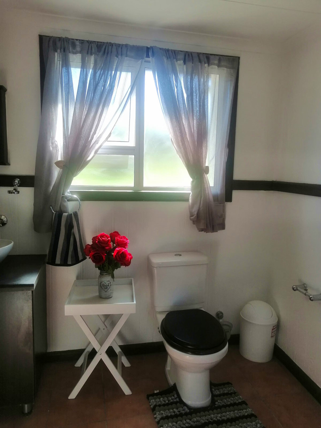 The main house presents a generous accommodation option for families or groups, featuring two bedrooms and two bathrooms, complemented by a spacious open-plan living area. A fully equipped kitchen ensures ease for self-catering, while the inviting lounge and informal bar area offer a warm and welcoming setting for socialising. Outdoors, guests can enjoy a dedicated braai space, adding to the relaxed coastal lifestyle.