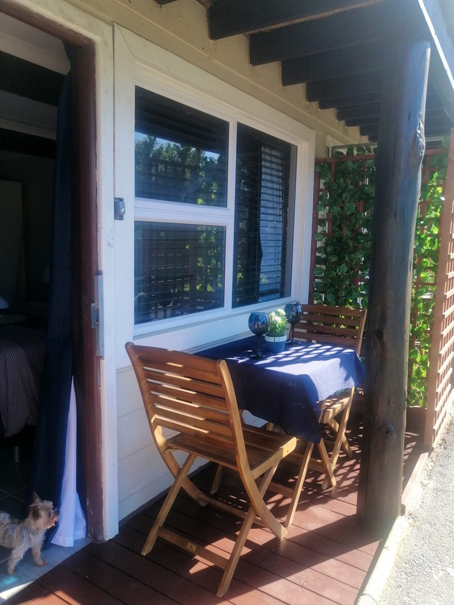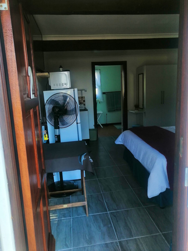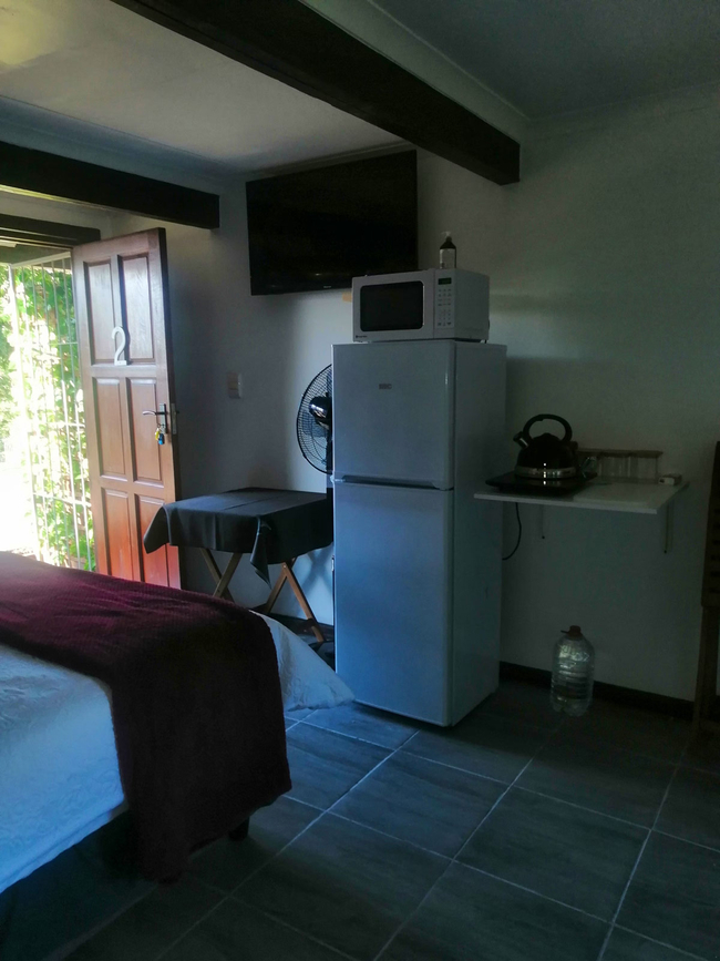Shyshark is a welcoming open-plan room featuring a double bed and an en-suite bathroom complete with a bath, washbasin, and toilet. Designed for comfort and convenience, the room includes an induction stove, microwave, fridge-freezer, cutlery, and crockery, along with a TV and free Wi-Fi for entertainment. Guests can unwind on the private patio, which is furnished with a table, chairs, and braai facilities—ideal for outdoor dining and relaxation. The unit consists of one bedroom and one bathroom, making it a great option for couples or solo travellers.
