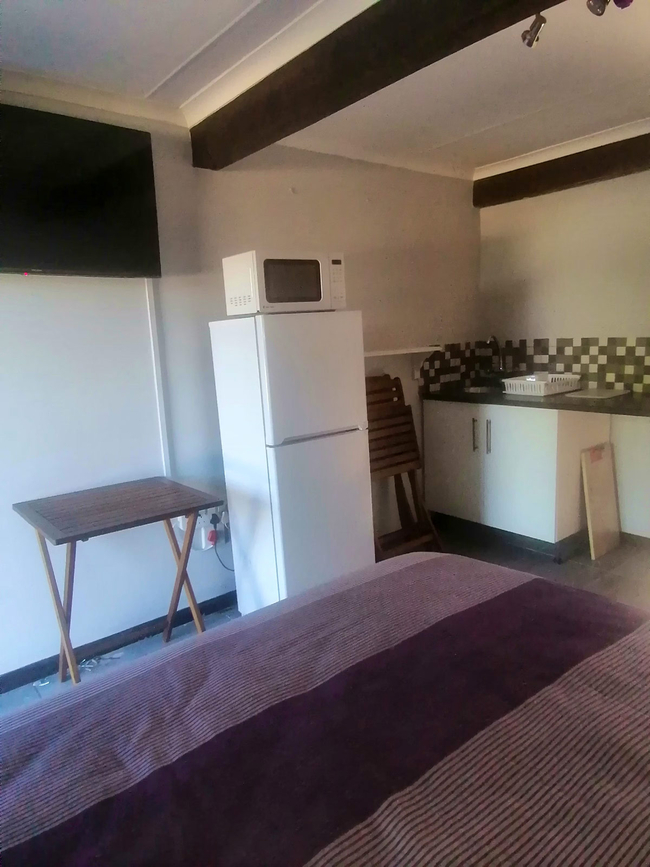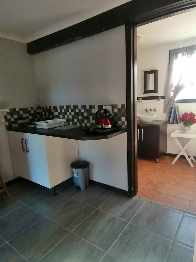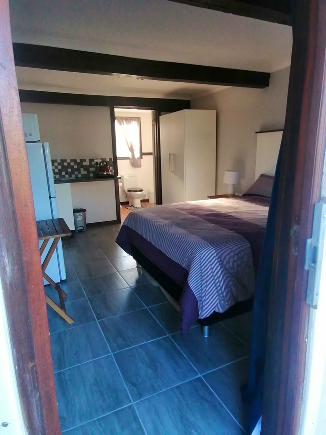 Luna is a cozy open-plan room featuring a comfortable double bed and an en-suite bathroom equipped with a shower, washbasin, and toilet. The room includes convenient self-catering amenities such as an induction stove, microwave, fridge-freezer, cutlery, and crockery. Guests can also enjoy a TV with free Wi-Fi for entertainment. Outside, the private patio is furnished with a table, chairs, and braai facilities—perfect for relaxing and dining in the fresh air. The unit includes one bedroom and one bathroom, making it an ideal choice for couples or solo travellers.