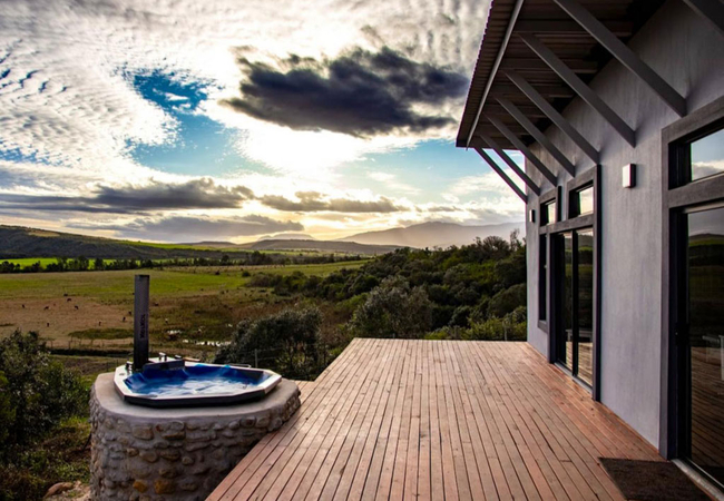 House on the Hill has three cottages. Each cottage can accommodate 4 guests, and contains two bedrooms, one bathroom, and an open-plan kitchen, dining and living area. The first bedroom is furnished with a Queen-size bed and the second with twin beds. The bathroom is fitted with a shower, bath, toilet and basin. Each cottage opens to a private deck with a Kolkol wood-fired hot tub. Each cottage has a Smart TV with Netflix, and free Wi-Fi internet access.