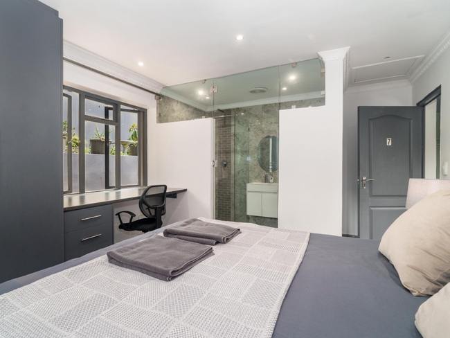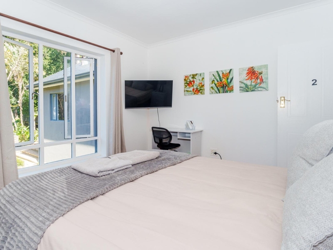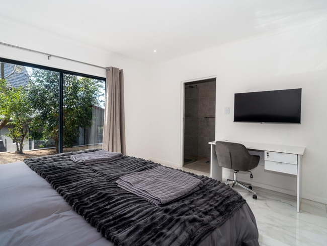 The guest house offers accommodation in king and queen rooms that can each accommodate between 2 and 3 guests. Each room contains a work desk, a Smart Android TV, DStv, Showmax, Netflix and fibre Wi-Fi are included. Some of the rooms have a three-quarter sleeper couch.