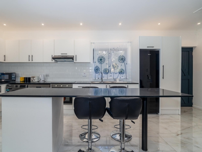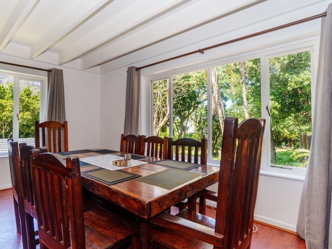 Guests have shared use of a communal dining area, a lounge with a TV with DStv, and a fully equipped kitchen that is fitted with a fridge-freezer, stove and oven, microwave, kettle, toaster, deep-freezer, and a washing machine.