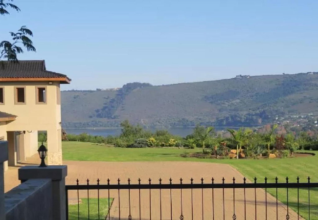 The guest house has a large wrap around patio overlooking the pond and Knysna lagoon.