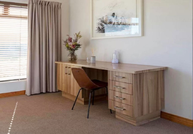 These rooms are north facing and have King-size beds that can be converted to two single beds by prior arrangement. The room has a couch and large desk. The en-suite bathrooms have a shower and bath. The rooms have drinking water, coffee, tea, milk and sugar as required. The rooms have free access to Wi-Fi.