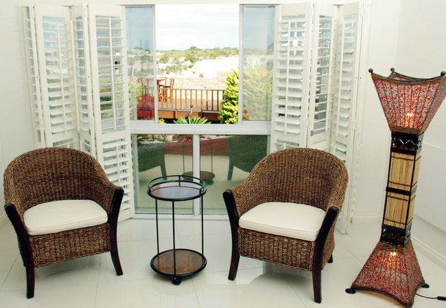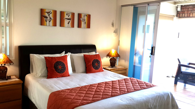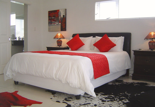 This double room with en-suite bathroom which includes a corner bath and shower is also suitable for smokers as it opens onto a porch area which offers a spectacular view of the seafront. The bedroom is fitted with fans and heaters for added comfort during the African seasons. All rooms are fully serviced.