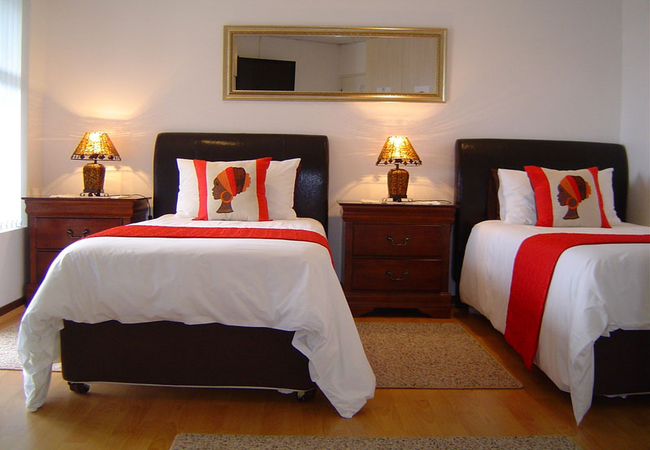 This luxurious and spacious signature bedroom allows you to relax and enjoy your stay in great comfort. The room also boasts a corner Jacuzzi bath and shower. The Lion room is suitable for a honeymoon stay and we offer complimentary decoration and champagne. The bedroom is fitted with fans and heaters for added comfort during the African seasons. All rooms are fully serviced.
