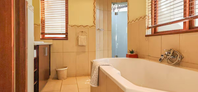 Hurutshi Lodge is a luxury 4-bedroom villa in the Zebula Golf Estate, that comfortably accommodates up to eight guests, offering the perfect blend of relaxation and entertainment. The property features a private pool, an outdoor shower, and a bar with a pool table, creating an ideal setting for leisure and socializing. Inside, the lodge is air-conditioned and equipped with full DStv, Netflix, fast Wi-Fi, and daily cleaning to ensure a comfortable and worry-free stay. The lodge provides a range of amenities designed for convenience and enjoyment. Guests can make use of the full kitchen, which includes a refrigerator, bar fridge, microwave, oven, toaster, two-plate stove, and dishwasher, as well as coffee and tea facilities. Laundry needs are easily handled with a washing machine, tumble dryer, iron, and ironing board. Bathrooms are thoughtfully designed, offering both shower-only options and spaces with separate tubs and showers. Indoor spaces feature a TV, dining table, sitting areas, and fans, while outdoor areas include a patio, balcony, plunge pool, outdoor furniture, garden, dining area, and braai facilities. Whether you are looking to relax by the pool, enjoy a barbecue with family or friends, or simply unwind in comfort, Hurutshi Lodge offers an inviting and unforgettable escape
