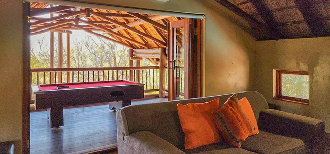 The property features a private pool, an outdoor shower, and a bar with a pool table, creating an ideal setting for leisure and socializing. Inside, the lodge is air-conditioned and equipped with full DStv, Netflix, fast Wi-Fi, and daily cleaning to ensure a comfortable and worry-free stay.