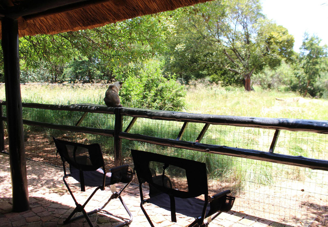 We have a bird hide on site where you can sit peacefully and observe the birds. In the evenings the ducks and duiker and sometimes the tortoises are waiting for their food. All our trees are endemic to South Africa and from the bushlands and we've also got a massive Baobab Tree.