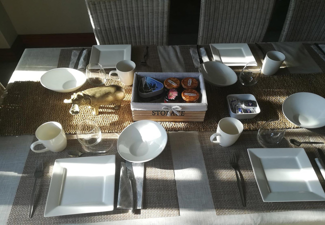 We offer a hearty English breakfast of bacon and eggs, fresh fruits, home-made bread and muffins. Dinner can be enjoyed at one of the restaurants in the area.