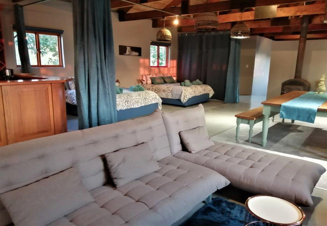 This big loft is on the first floor and has a nice view of the property. It has a spacious lounge area with a TV and two Queen-size beds. There is a well equipped kitchen. The bathroom is equipped with a shower, hand basin and WC. All rooms have a TV with DStv / satellite channels and Wi-Fi.