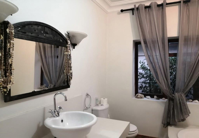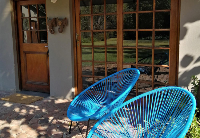 This is a traditional South African cottage with a view on the bush and garden. The room has a lounge with a sofa bed and a TV. There is a well equipped kitchen. The bedroom is furnished with a Queen-size bed. The bathroom is equipped with a shower, hand basin and WC. All rooms have a TV with DStv / satellite channels and Wi-Fi.