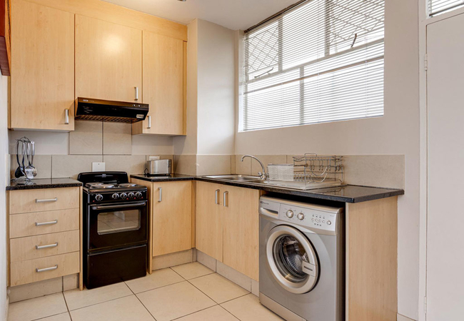 Illovo Mews 216 is a self catering holiday apartment furnished with a Queen-size bed in the bedroom area and an en-suite bathroom fitted with a bath, shower, toilet and basin. Complimentary toiletries are supplied. There is a fully equipped kitchen including a washing machine and tumble dryer. The seating area has a comfortable couch, coffee table and TV with Netflix. The complex has free private parking and a braai area. A paid airport shuttle service is also available. A maid service can be arranged at an additional cost.