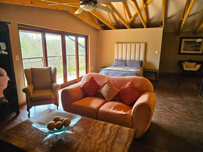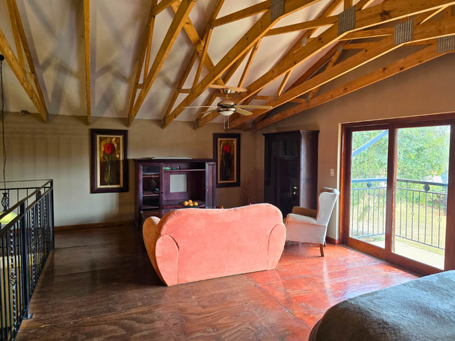 Imbabali Retreat is situated in Hekpoort, offering guests a peaceful escape surrounded by the natural beauty of the Magaliesburg Mountains. The farm features a small dam where visitors may swim or enjoy catch-and-release fishing. Part of the land is dedicated to cultivating organic produce, while both large and small dogs roam freely, adding to the homely character of the property. At dusk, the haunting call of jackals and other wildlife drifts across the valley, creating a truly authentic countryside atmosphere.