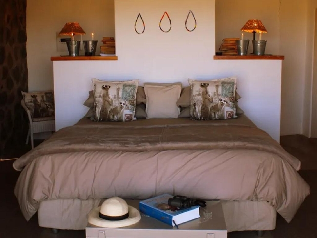 Mongoose Cottage is a tastefully furnished retreat featuring a cozy fireplace, comfortable couches, and breathtaking views of the garden, mountains, and nearby landmarks. The open-plan living area includes a fully equipped kitchen with a refrigerator, microwave, oven, toaster, and a 2-plate stove, ideal for a self-catering stay. The cottage has one en-suite bedroom and two additional bedrooms that share a bathroom, offering flexible accommodation for families or groups. Guests can relax on the covered deck with outdoor furniture and enjoy braai/barbecue facilities in the garden. Additional amenities include a dining table, ceiling fan, electric blankets, bathroom essentials, a hairdryer, iron and ironing board, and both a bathtub and shower. The cottage is non-smoking, serviced daily, and designed to offer a comfortable and scenic stay.
