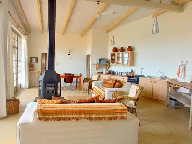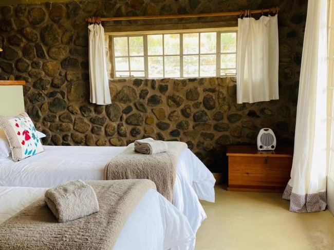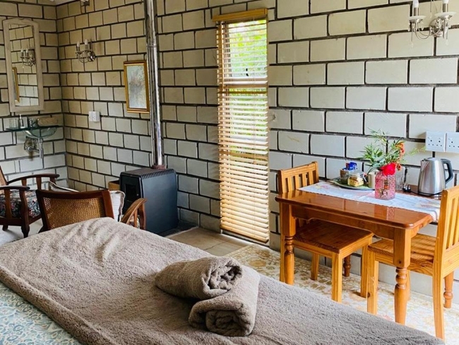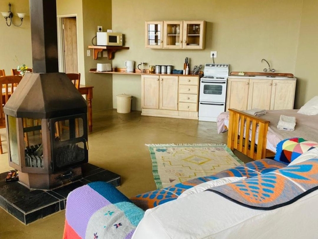 Porcupine Cottage is a tastefully furnished unit that offers a cozy and inviting atmosphere, complete with a fireplace, comfortable couches, and spectacular views of the garden, mountains, and surrounding landmarks. The open-plan living area includes a sofa bed and a fully equipped kitchen featuring a refrigerator, microwave, oven, toaster, and 2-plate stove, making it perfect for a self-catering stay. The cottage has two en-suite bedrooms, providing both comfort and privacy, and opens onto a covered deck with outdoor furniture and braai/barbecue facilities. Additional amenities include a dining table, ceiling fan, electric blankets, bathroom essentials, hairdryer, iron and ironing board, and both a shower and bathtub. Non-smoking and serviced daily, Porcupine Cottage is an ideal getaway for relaxation in a scenic setting.