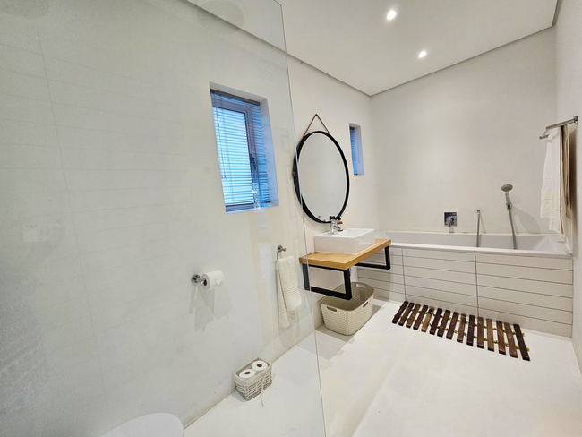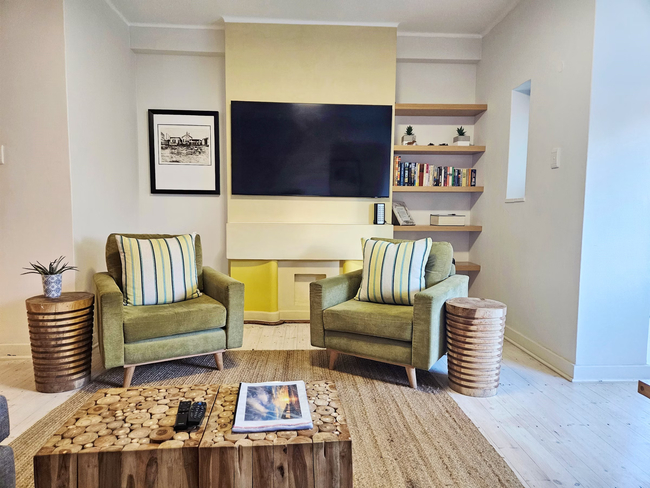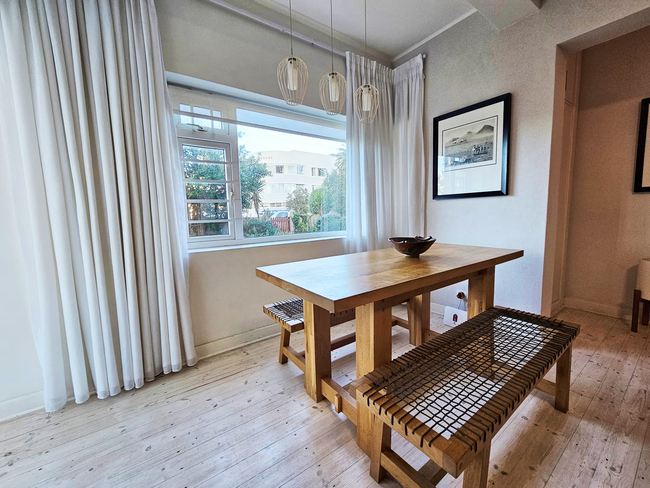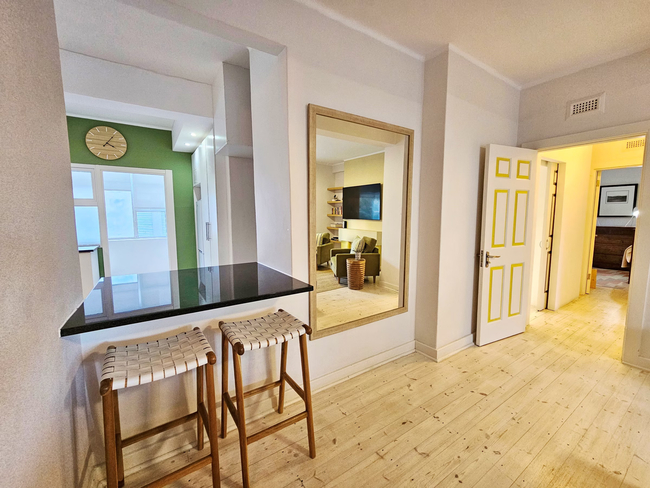 This charming ground floor apartment, with delightful garden views, has two bedrooms, one bathroom, a kitchen, a dining area and a lounge. The main bedroom is furnished with a double bed and the second bedroom is furnished with two single beds. The bathroom is equipped with both a shower and a bath. The kitchen is well-appointed with a stove, oven, microwave, refrigerator, and tea and coffee-making facilities. Guests can enjoy their meals at the dining table. The lounge is a cozy retreat, featuring a TV with selected DStv channels, Wi-Fi access, and an opening onto the garden. Guests can also benefit from secure parking available in a lock-up garage.
