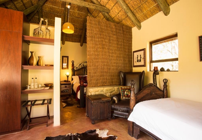 The Leopard Chalet is tastefully decorated and fully furnished. The chalet has two bedrooms. The first bedroom is furnished with a Queen-size bed and the second bedroom has two single beds, The bathroom is equipped with a shower, hand basin and toilet. Each chalet is also well-equipped for self-catering and offers either river or garden views. A big, outside braai facility and well equipped kitchen serves both chalets. A well manicured bushveld garden leads down to the river which is suitable for swimming.