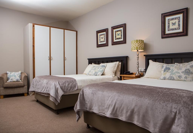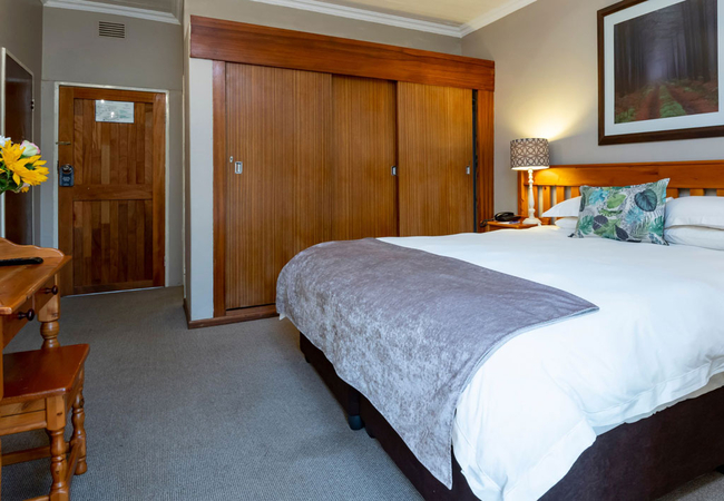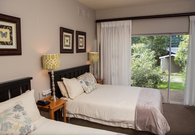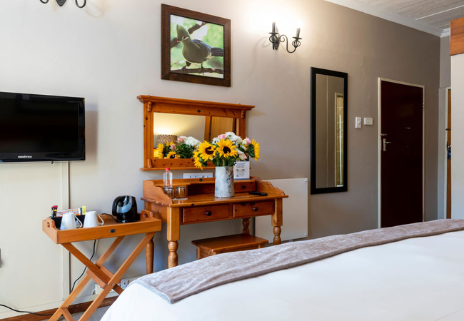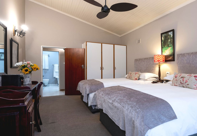 We offer 43 spacious and comfortable rooms all with their own verandas, looking out onto a tranquil forest setting. All rooms have en-suite bathrooms and are equipped with flat screen TVs, DStv, tea and coffee making facilities, heaters and electric blankets and an undercover parking. We offer the following room options: