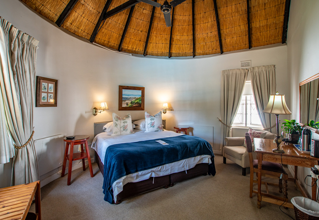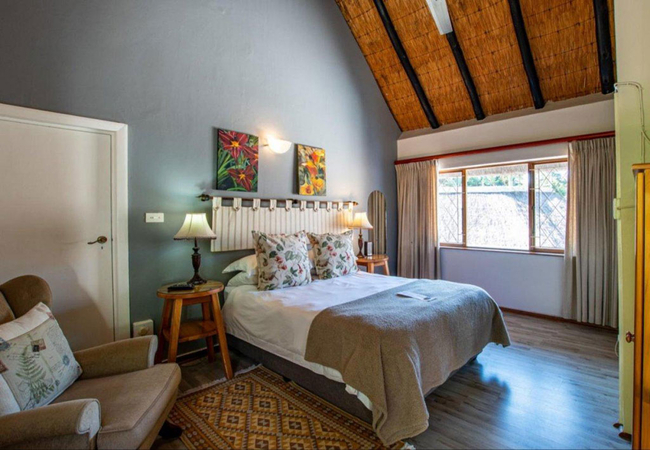 King Room is furnished with a King-size bed and has an en-suite bathroom with shower, bath, toilet and basin. Each room enjoys ceiling fans, DStv with hotel bouquet, Wi-Fi, bar fridge, tea/coffee making facilities and a hairdryer. Breakfast is included in the rates.