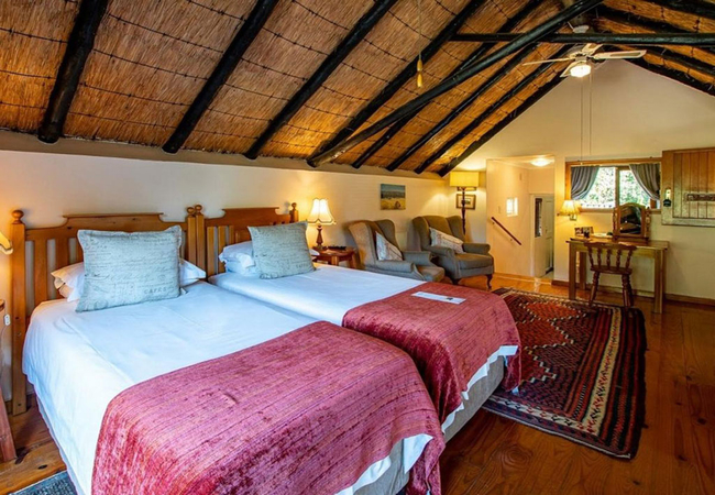 Standard Twin Room is furnished with a double bed and has an en-suite bathroom fitted with a shower, toilet and basin. The room has a ceiling fan, DStv,Wi-Fi, a bar fridge, tea / coffee making facilities and a hairdryer. Breakfast is included.