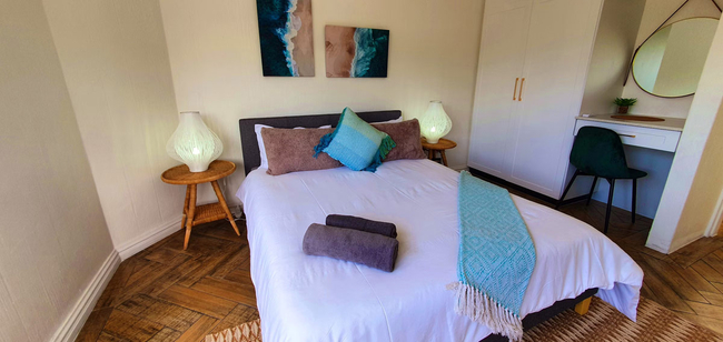 The top floor provides an additional lounge area with a built-in bar and kitchenette. From here, a balcony with deck chairs and a kettle braai invites guests to take in the breathtaking views of both the sea and the lagoon.