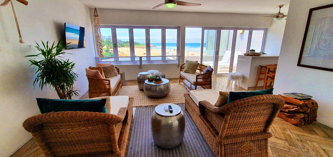 Inn on the Sea 3 is a beautifully appointed apartment situated in a secure complex, positioned on the lagoon and the popular Blue Flag swimming beach. The ground floor features a stylishly furnished lounge with unlimited Wi-Fi and a flat-screen television, creating the perfect setting for relaxation while enjoying panoramic views of the sea and lagoon. A small enclosed garden and a guest toilet are also located on this level.