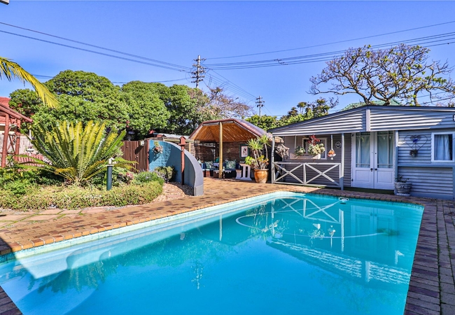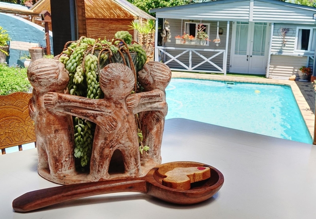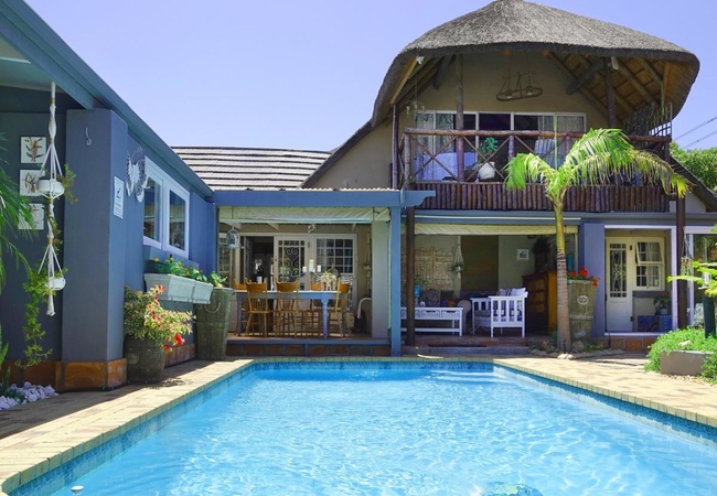 The Beach Room comprises of a private patio that overlooks the pool. The stylishly decorated room features a Queen-size bed, an en-suite bathroom (with a shower over bath, toilet and a basin) and white washed furniture. There is a private entrance, ample cupboard space, a flat-screen TV with DStv, heater / fan, a bar fridge and tea / coffee making facilities within each room. Bed linen, bathroom towels and a hairdryer are provided.