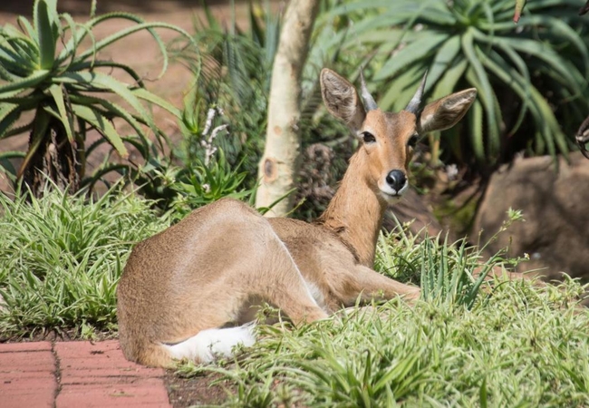 This large and spacious chalet has a double bed and a single bed and an en-suite bathroom with shower. There is a covered veranda overlooking the Blue Duiker enclosure. Includes tea/coffee and standard guest amenities.