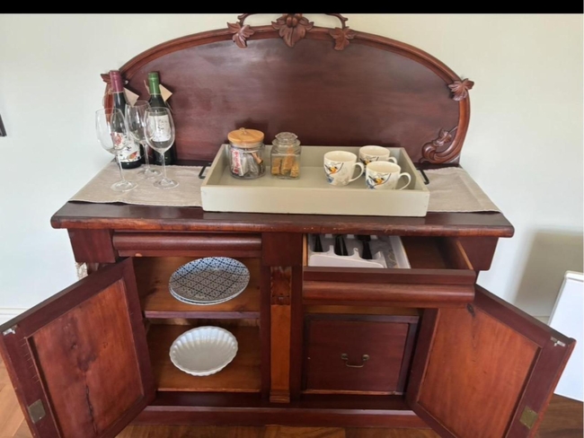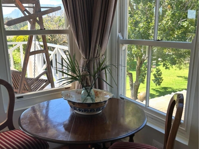 "The Oaks," located on the first floor of the Historic Manor House, offers a charming retreat overlooking Oak Lane. This elegant room features a full bathroom with a separate tub and shower, along with thoughtful amenities for a comfortable stay. Guests can enjoy modern conveniences such as Wi-Fi, air conditioning, satellite TV, and a dedicated workspace. The room is equipped with a kitchenette, complete with a microwave, minibar, bar fridge, and coffee and tea facilities. Additional touches include a hairdryer, non-feather pillows, and bathroom amenities. Step outside to unwind in the outdoor seating area or make use of the braai facilities for an al fresco dining experience. A continental breakfast is served beneath the shade of the magnificent Australian fig tree, adding to the charm of this historic setting.