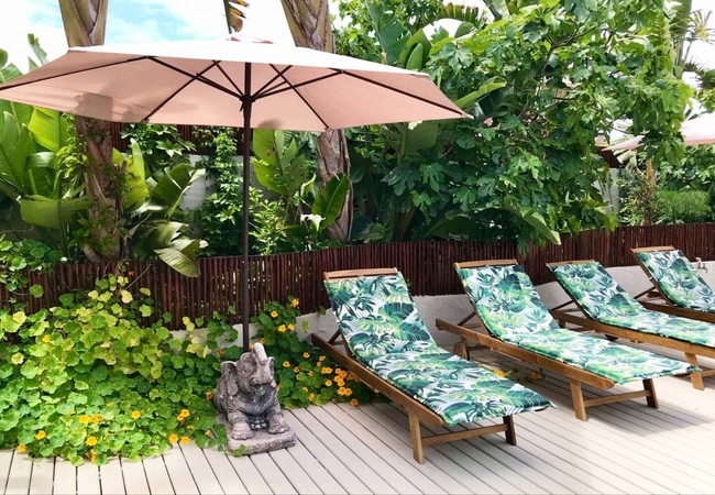 Seahorse Suite opens onto the central courtyard and pool. The room is furnished with a King-size bed. The en-suite bathroom is fitted with a bath, shower, toilet and basin. All the rooms have Wi-Fi, TV with streaming services and a tea / coffee station. This suite features a private patio.