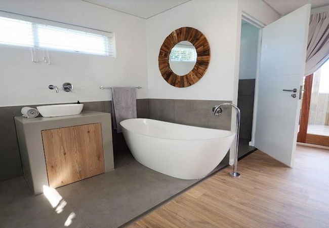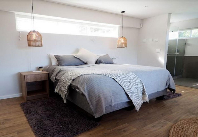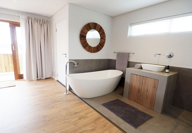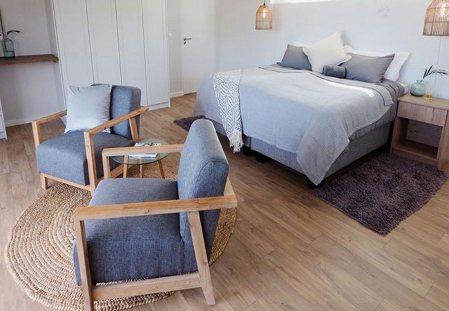 Goliath Heron Suite is furnished with a King-size bed. The en-suite bathroom is fitted with a bath, shower, toilet and basin. All the rooms have Wi-Fi, TV with streaming services and a tea / coffee station. Enjoy partial views of the Swartvlei Lagoon, the forested dune and stunning sunsets from the balcony.