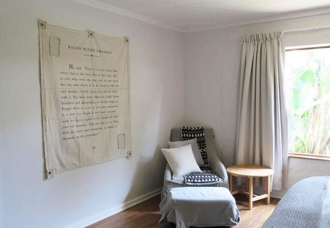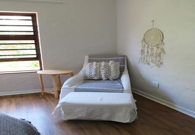 Outeniqua Room is furnished with a King-size bed (twin optional) and a comfortable reading chair. The en-suite bathroom is fitted with a bath / shower combo, toilet and basin. All the rooms have Wi-Fi, TV with streaming services and a tea / coffee station. This spacious room has a garden view.